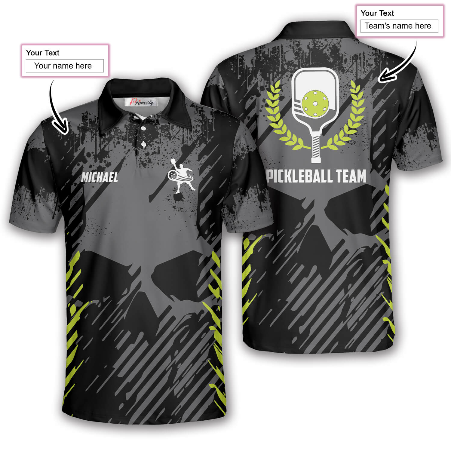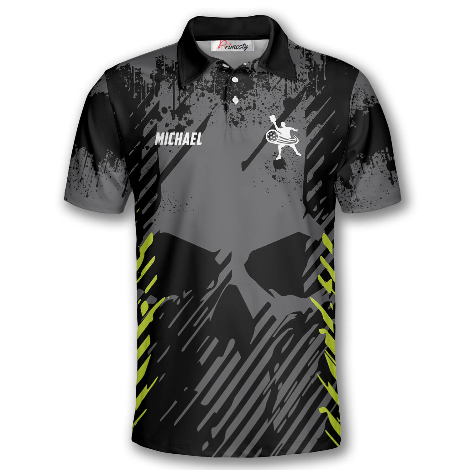 Cornbee Personalized Name and Team name Emblem Grey Grunge Skull Background Pickleball 3D Polo Shirt