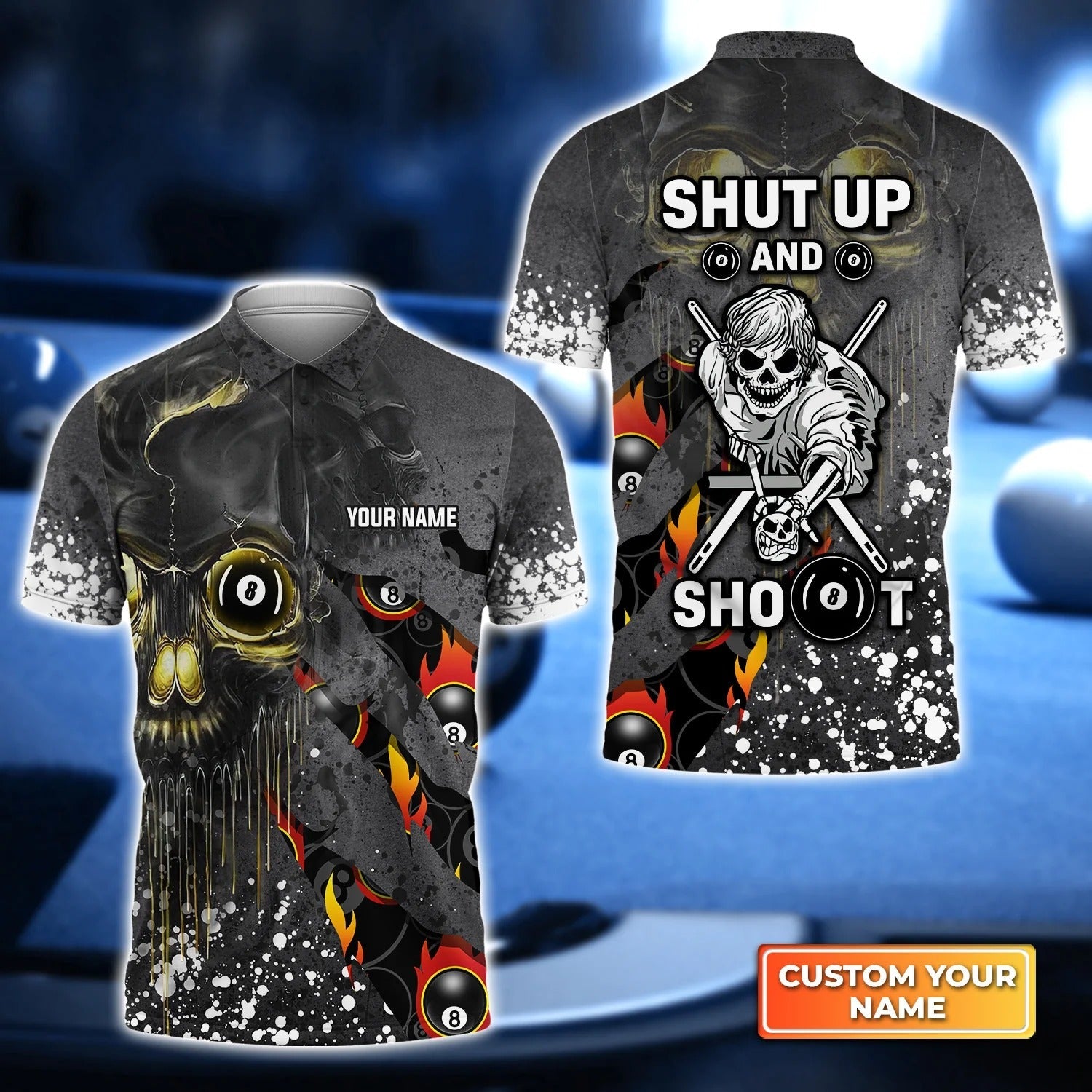Custom Billiard Men Polo Shirt - Shut Up And Shoot Billiard Pool 8 Ball Personalized Name Polo Shirt Gift For Men, Billiard Players, Billiard Lover Cornbee