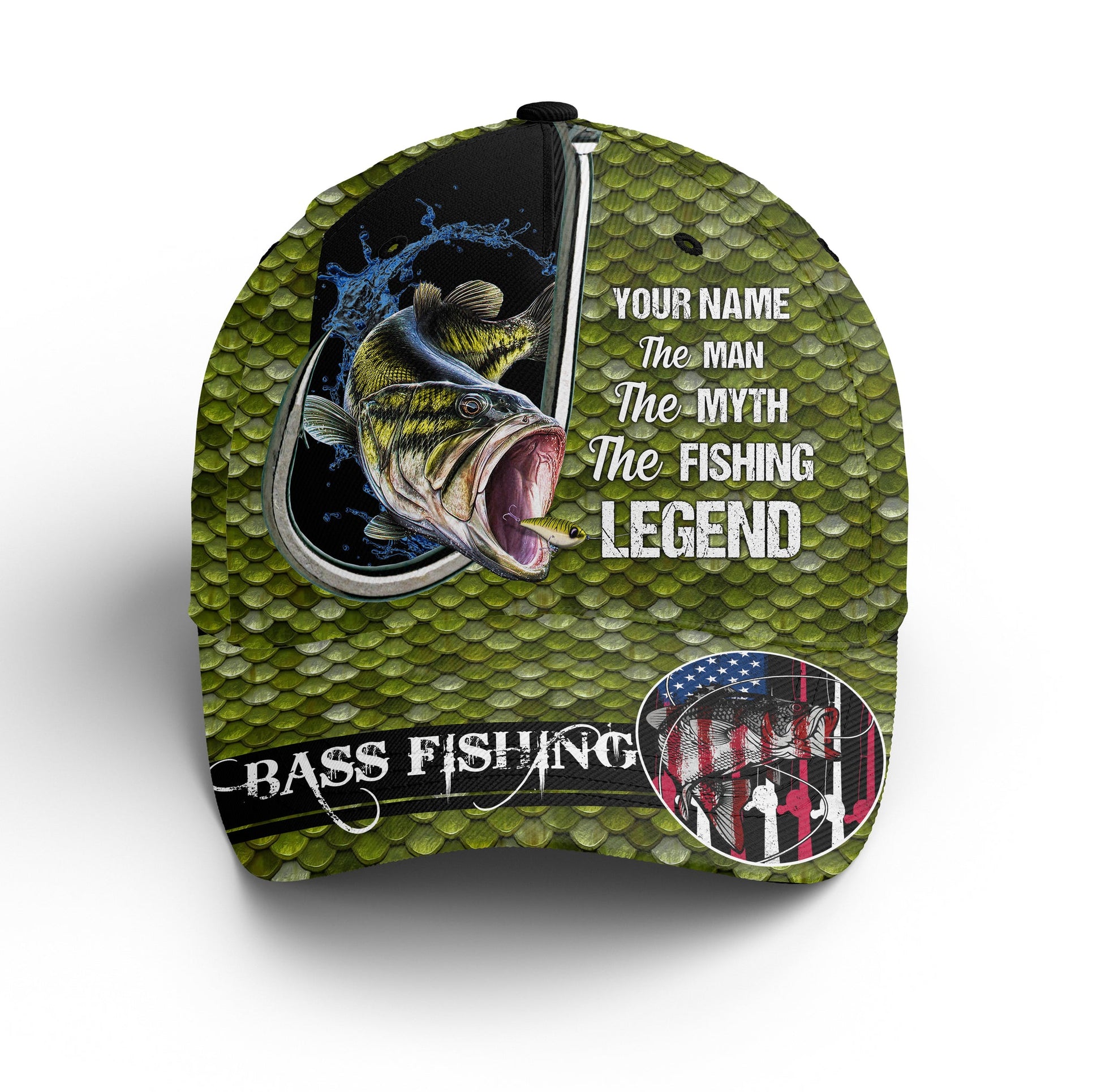 Bass Fishing the man the myth the legend US flag Custom fishing hat Unisex Fishing Baseball Angler hat Cornbee