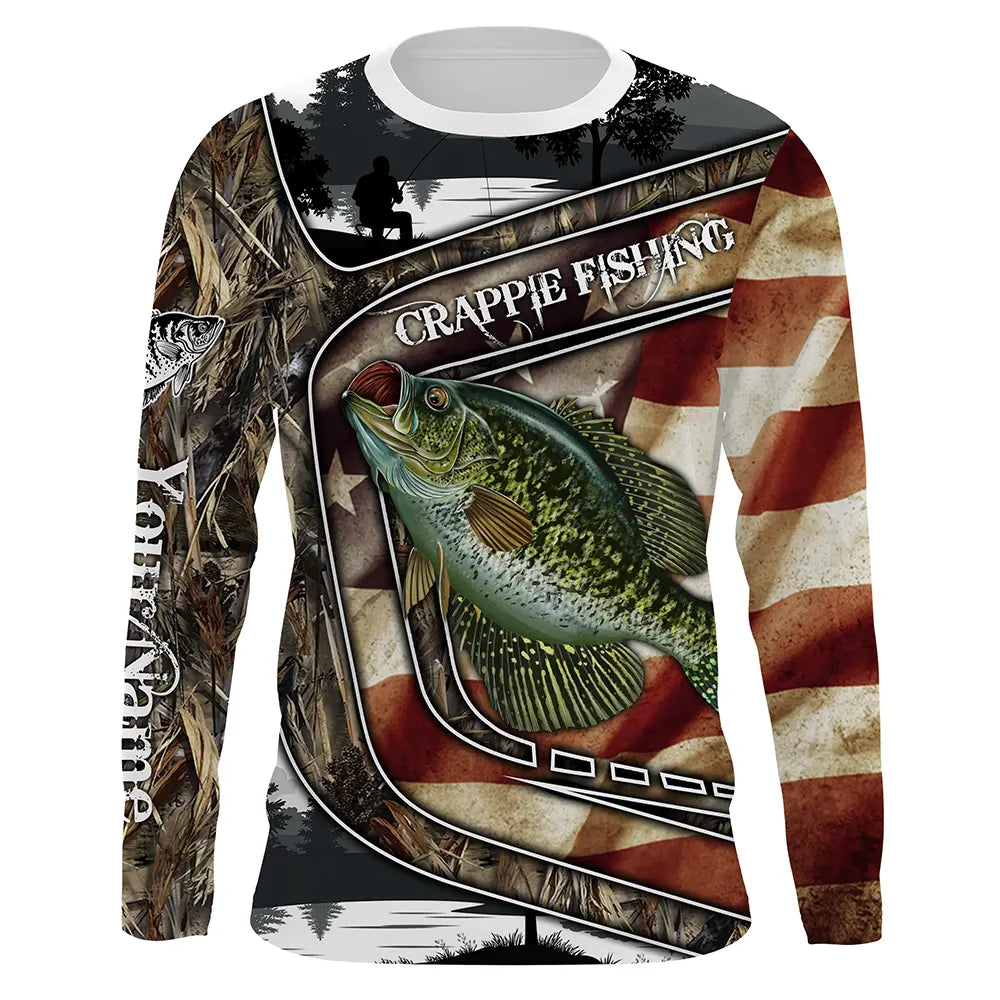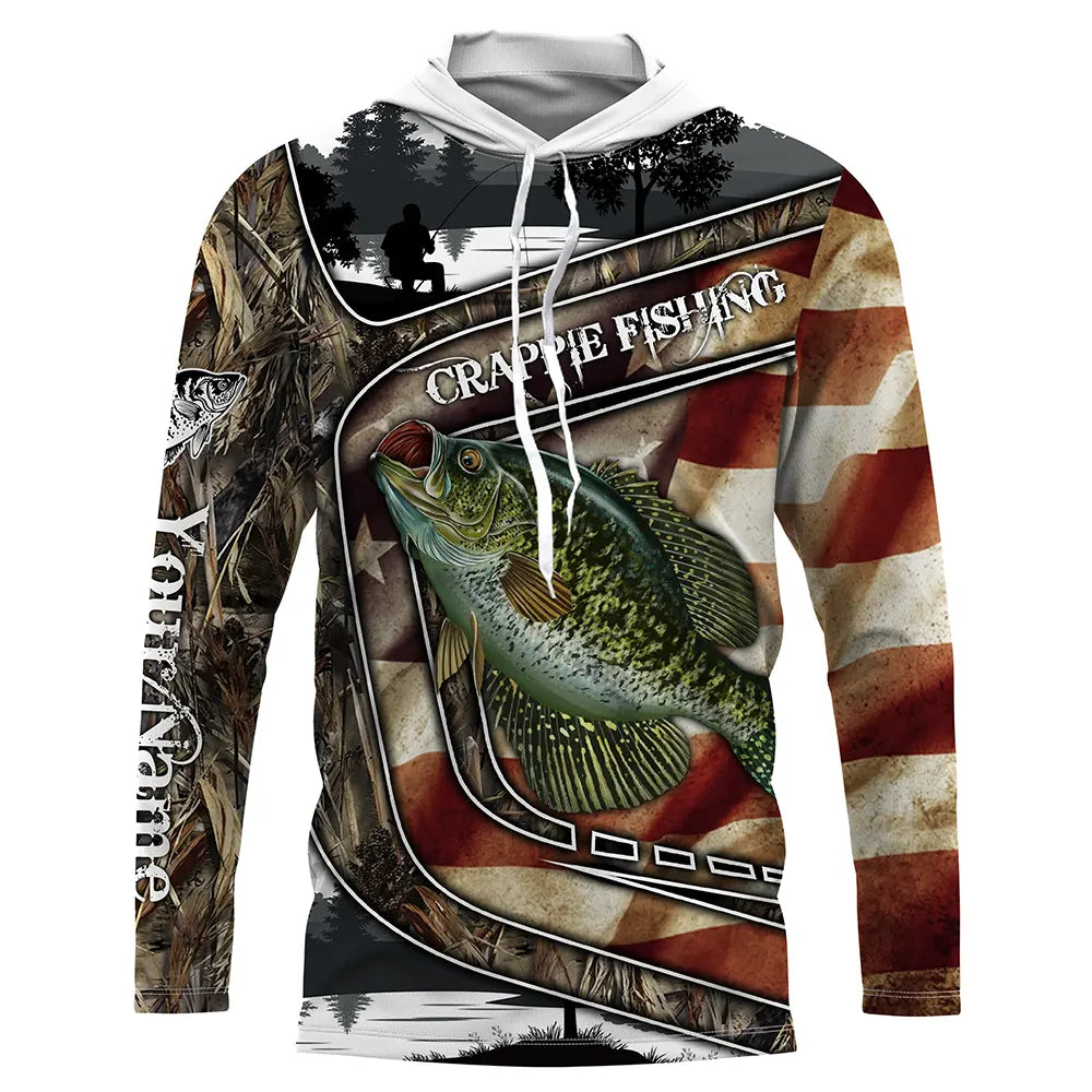 American Flag patriotic Crappie Fishing Jerseys, Custom camo Crappie fishing Long sleeve shirts Cornbee
