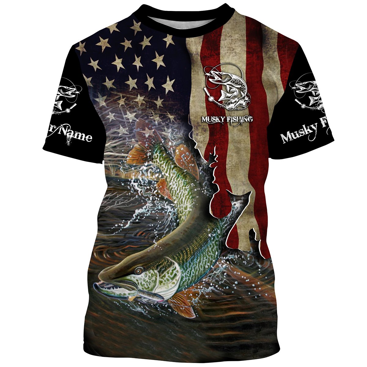 Musky Fishing 3D American Flag Patriotic Customize name All over print shirts - personalized fishing gift for Adult Cornbee